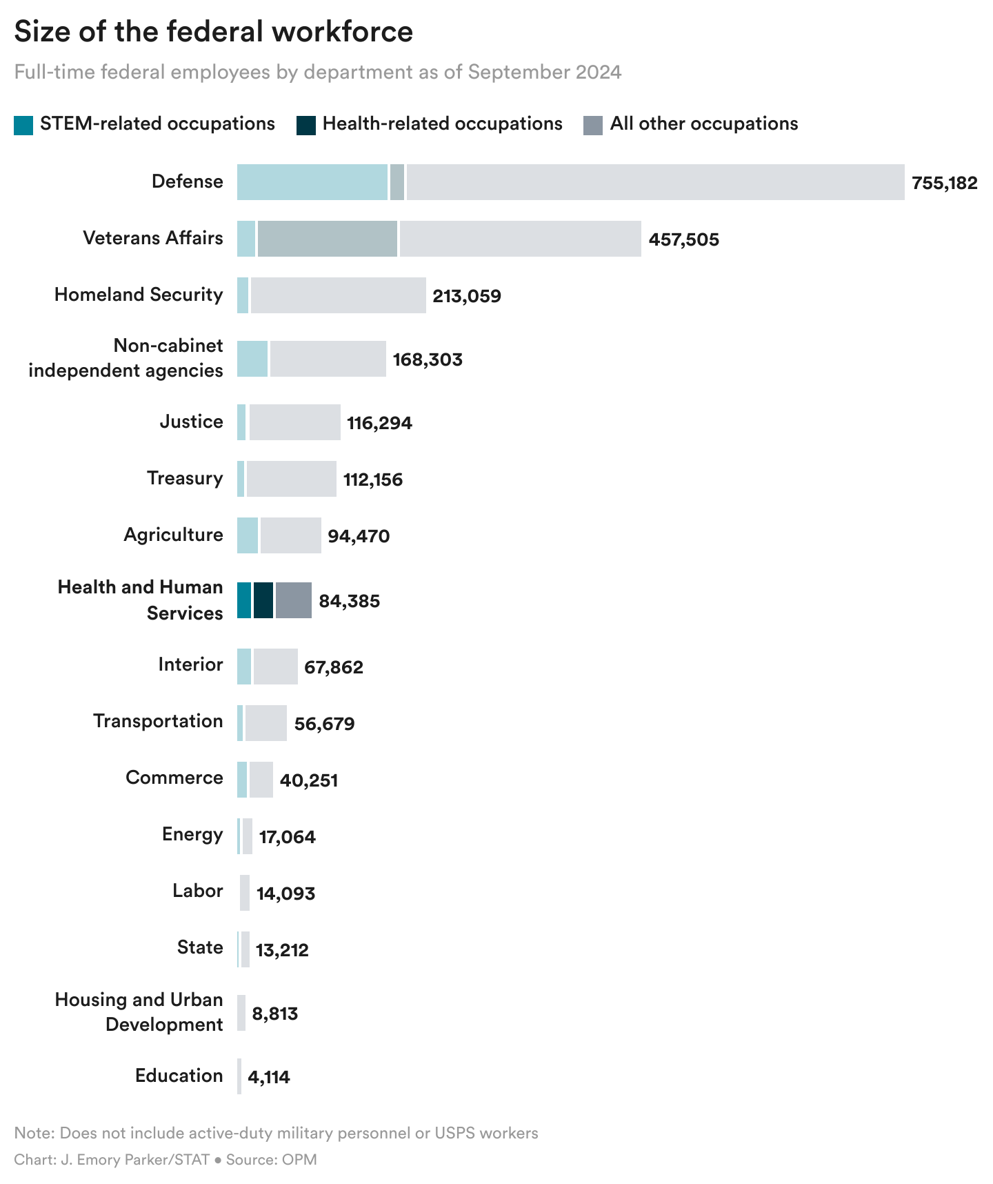 Stay tuned for more details about this upheaval and its broader implications for health care in the United States. But for now, here's the scoop. And for the visual learners out there, here’s a graph detailing the HHS workforce, compared with other government agencies.